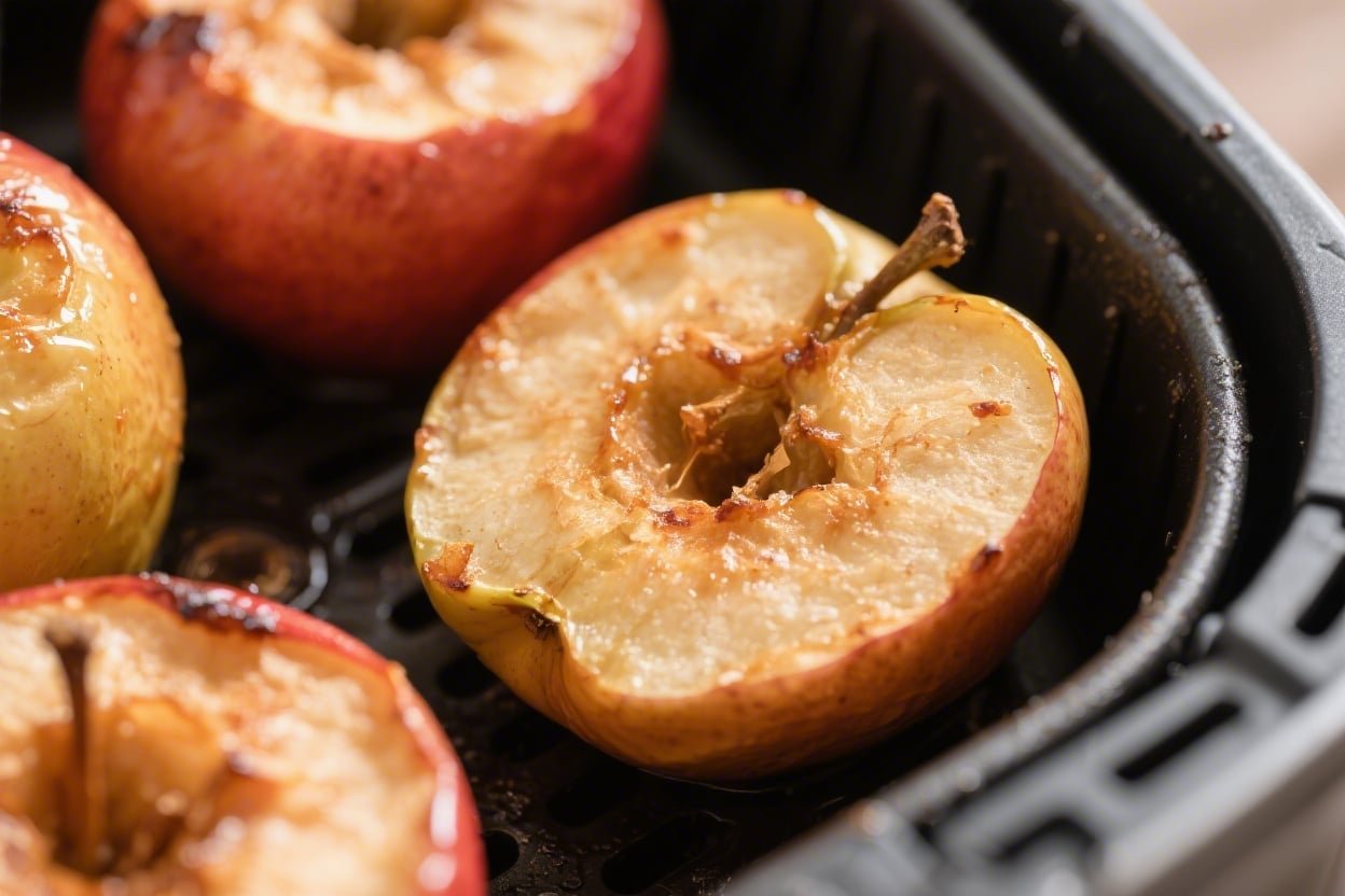 7. Air fry: Cook at 350°F (175°C) for 12–16 minutes. Check at 10 minutes. Apples are done when the flesh is tender when pierced and the tops look glossy and caramelized.