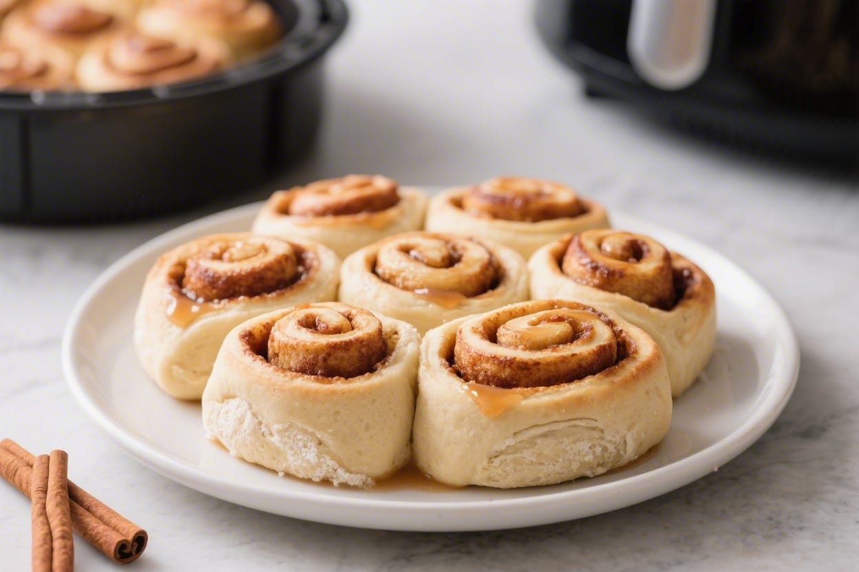 Warm, gooey cinnamon rolls don’t have to be a weekend project. With an air fryer, you can bake them faster, with golden edges and a soft, tender center. Make a quick dough from scratch when you have time, or go with canned rolls when you don’t.