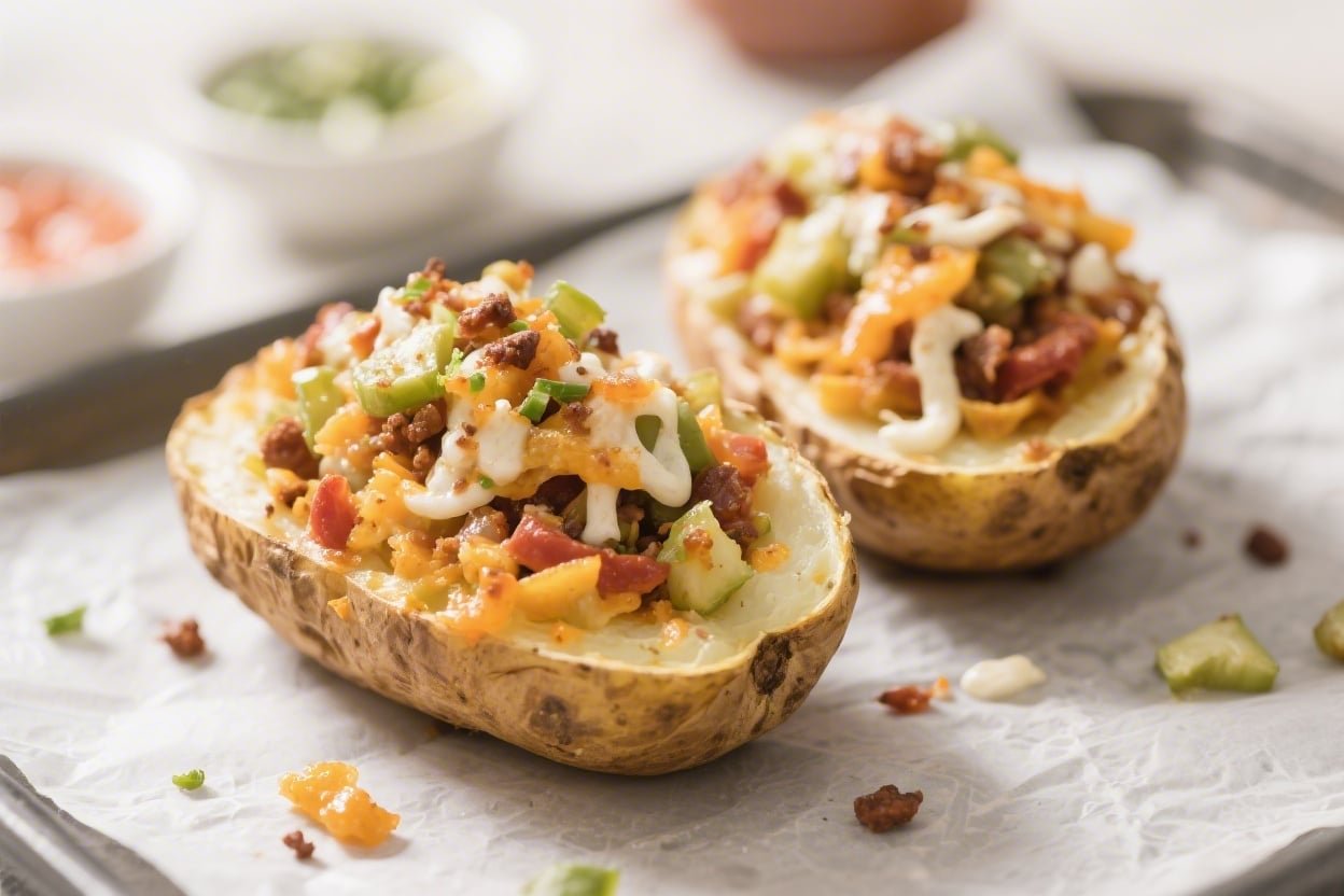 - Layered flavor: Butter, salt, and garlic powder season the shells, then cheese and bacon bring the savory punch. A final hit of green onion and sour cream balances it all.