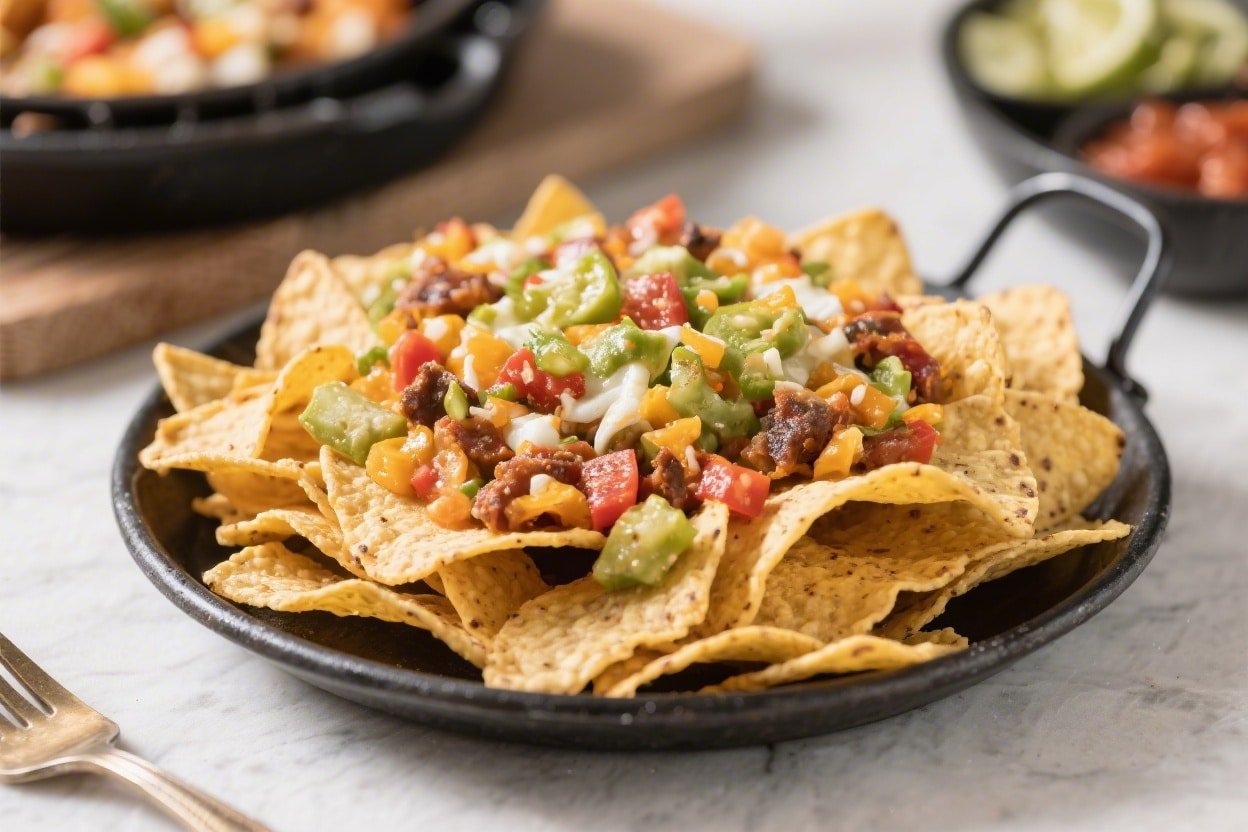 • Fully Loaded Keto: Use low-carb chips or cheese crisps, top with seasoned ground beef, jalapeños, and avocado, and finish with sour cream.