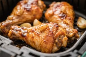 High heat, quick cook time: The air fryer circulates hot air, creating a crisp crust fast without drying out the chicken. You get the crunch of frying with a fraction of the oil.