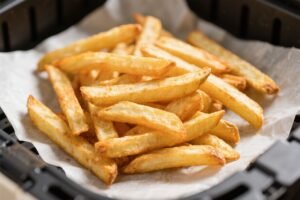 - Don’t crowd the basket: Airflow is key to crispiness.