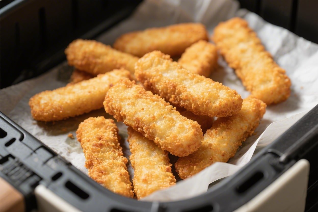 Air fryers circulate hot air around the fish sticks, which helps them get that golden, crunchy exterior without soaking in oil. The fast, even heat keeps the inside warm and flaky while the coating crisps up quickly.
