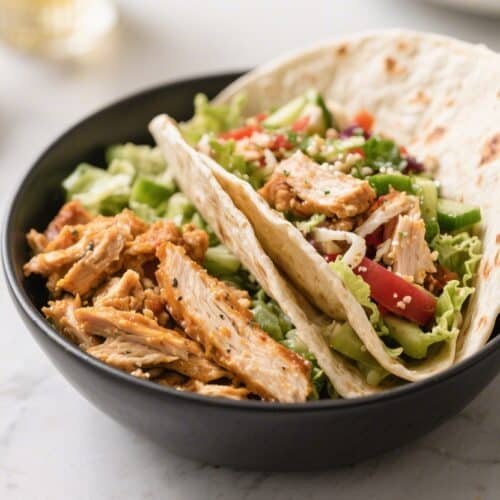 Build a bowl. Skip the tortilla and arrange rice, beans, corn, chicken, pico, avocado, yogurt, and cilantro in a bowl. Finish with a squeeze of lime and a pinch of salt.
