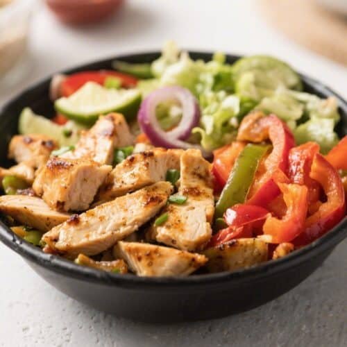 Toss and finish: Combine cooked chicken, peppers, and onions. Squeeze in remaining lime juice and sprinkle with chopped cilantro. Taste and adjust salt or lime.
