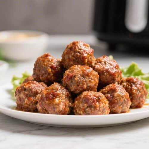 Toss with sauce (optional). Warm your sauce separately, then toss cooked meatballs to coat. For a sticky glaze, air fry sauced meatballs 1–2 more minutes to set.