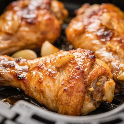 Glaze and finish. Brush the cooked chicken with the warm honey garlic glaze. Air fry 1–2 more minutes to set the glaze, or simply toss the thighs in a bowl with the sauce.