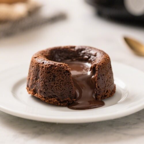 Prep the air fryer and ramekins: Preheat the air fryer to 375°F (190°C) for 3–5 minutes. Generously grease the ramekins with butter or spray, then dust with cocoa powder, tapping out the excess. This prevents sticking and helps the cakes release cleanly.