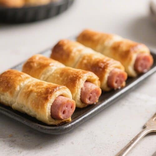 Air fry: Cook for 6–9 minutes, checking at minute 5. They’re done when the dough is deep golden and cooked through, and the sausages sizzle.
