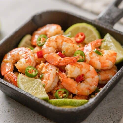 Air fry: Cook at 400°F for 5–7 minutes, flipping halfway. Shrimp are done when pink, opaque, and curled into a loose C. Avoid tight O-shaped curls, which can mean overcooked.