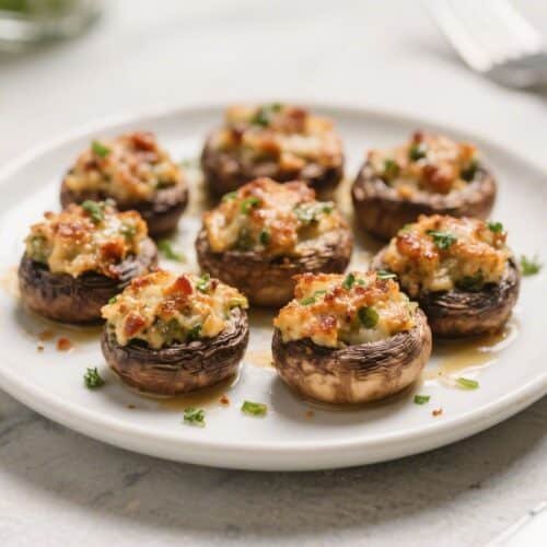 Air fry to finish. Arrange the stuffed mushrooms in a single layer, not touching. Air fry at 375°F (190°C) for 6–9 minutes, until the tops are golden and the filling is hot and set. Smaller caps cook faster; check at 6 minutes.