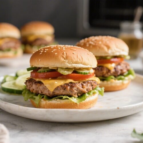 Toast buns (optional): Remove burgers and quickly toast buns in the air fryer at 350°F (175°C) for 1–2 minutes.