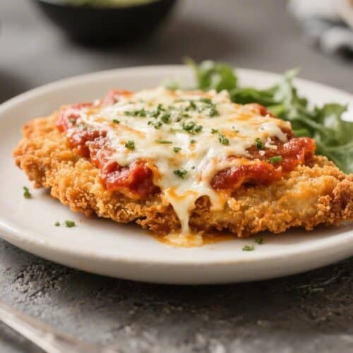 Add sauce and cheese: Spoon a thin layer of marinara over each cutlet. Top with mozzarella and a sprinkle of Parmesan. Return to the air fryer at 360°F (182°C) for 2–3 minutes, just until the cheese is melted and bubbly.
