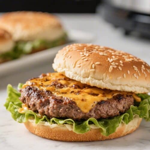 Cook another 5–7 minutes: Total time is typically 11–14 minutes for 4–6 oz beef patties. Exact time depends on thickness and your air fryer model.